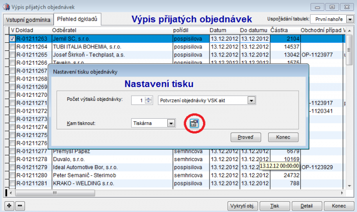 Postup: v jakékoliv nabídce nastavení tisku stisknout ručičku s dopisem, což otevře nastavení tiskárny.